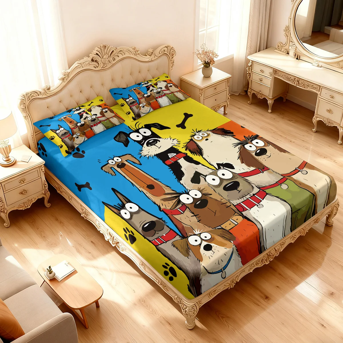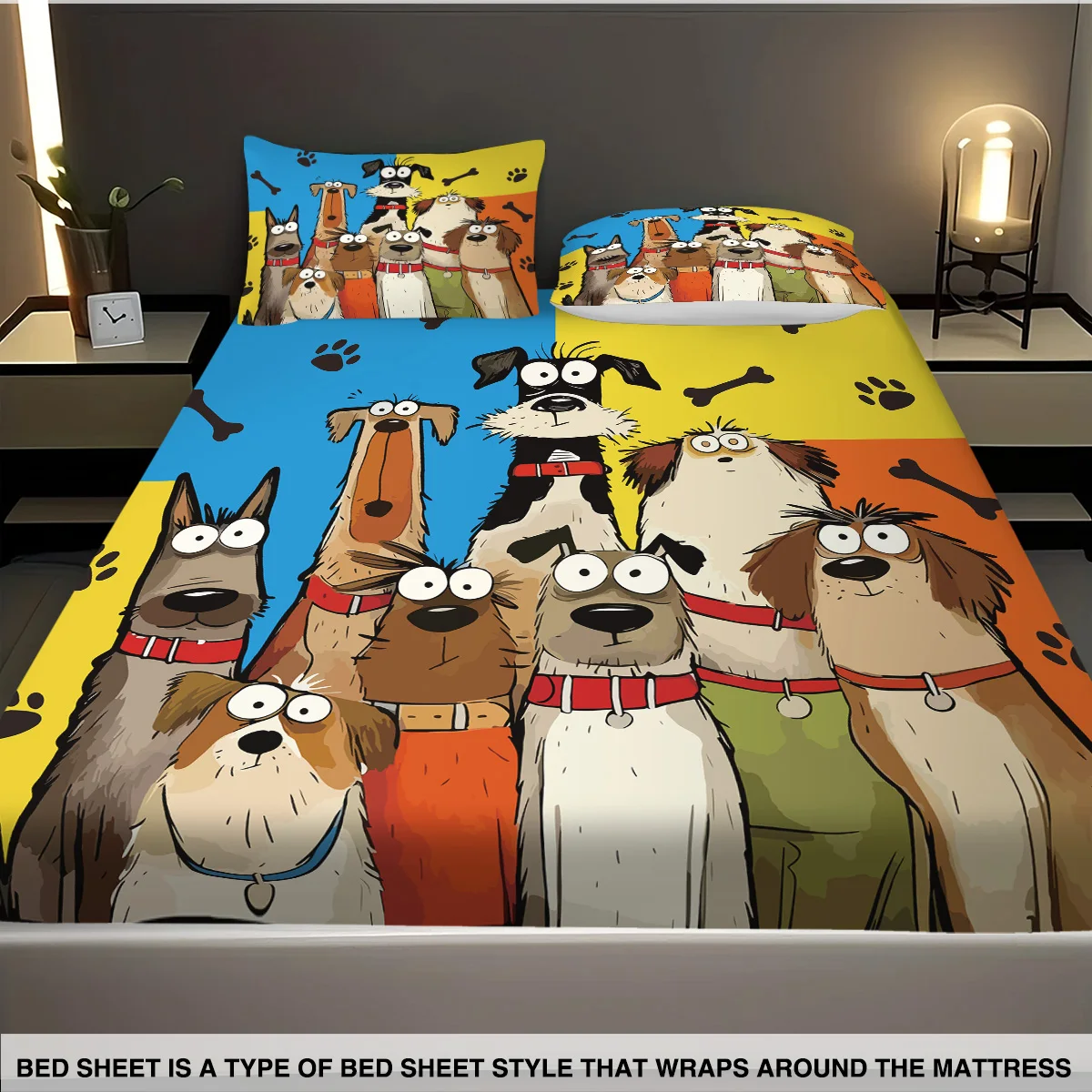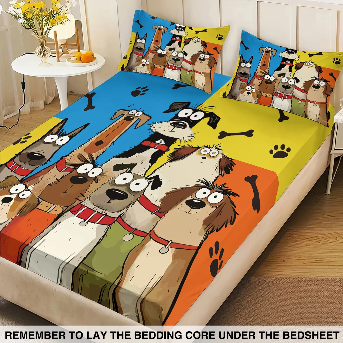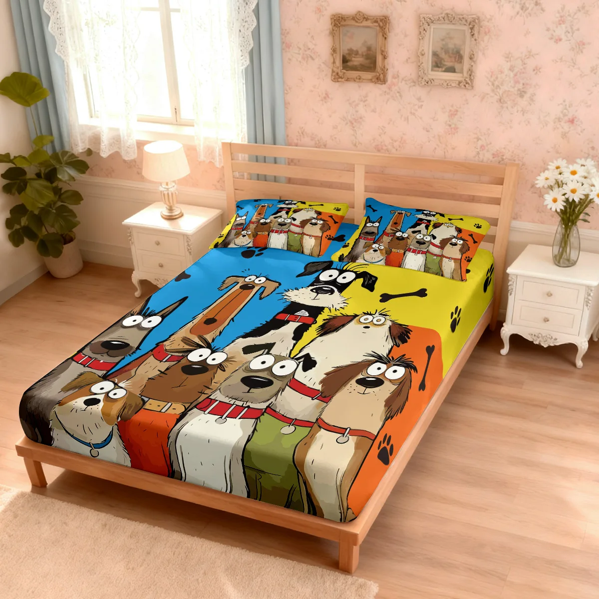 Cute Cartoon Dog Printed Chipless Bed Sheet Set