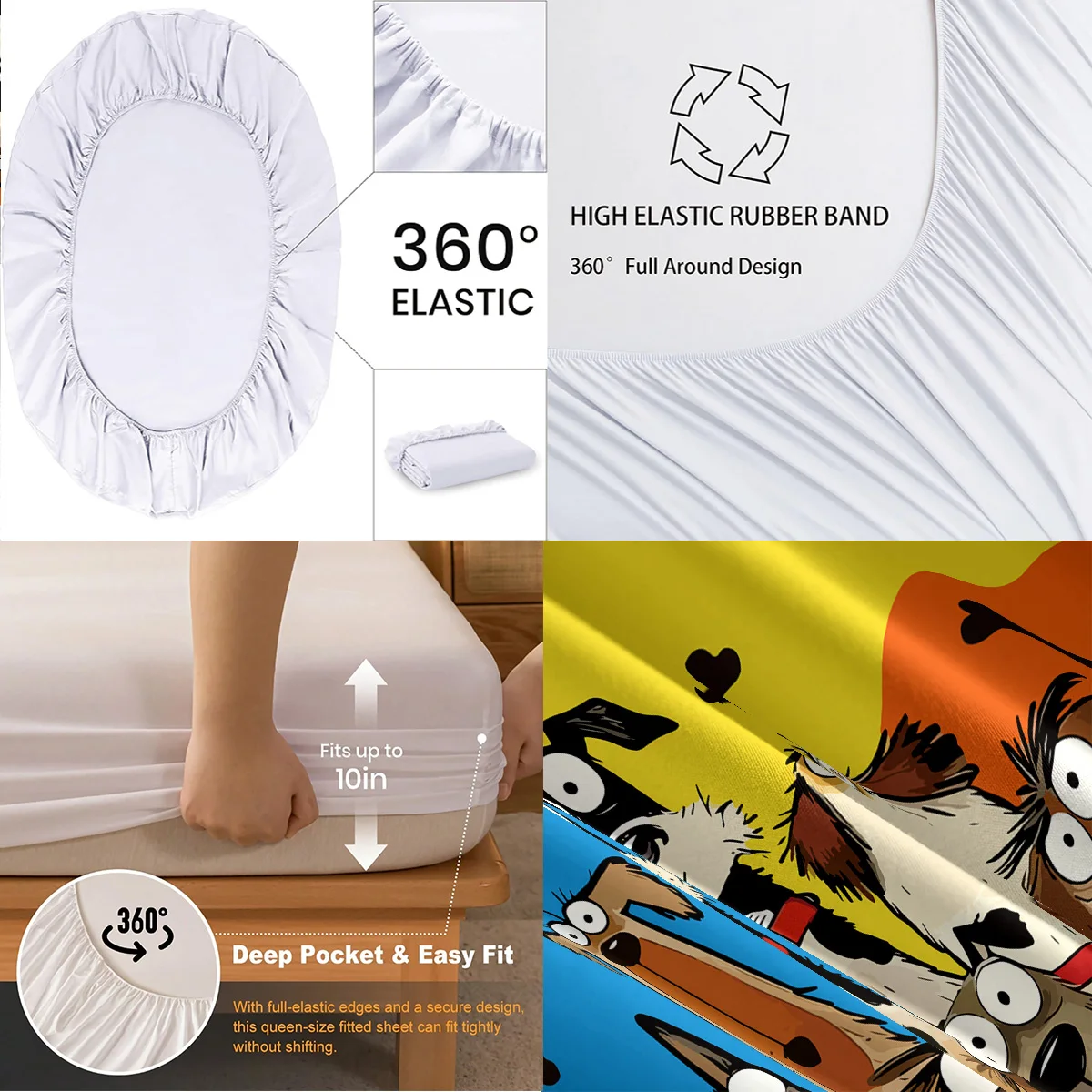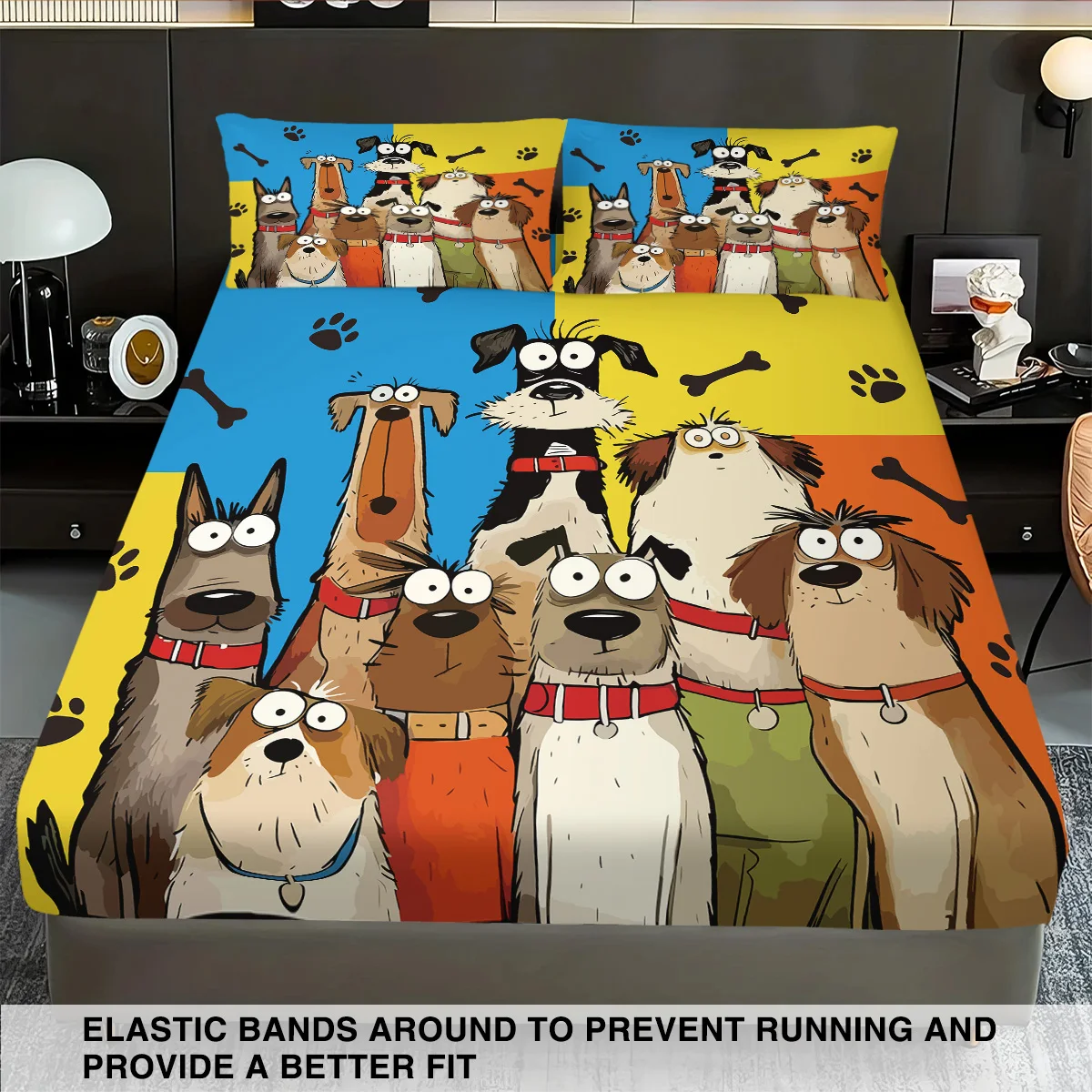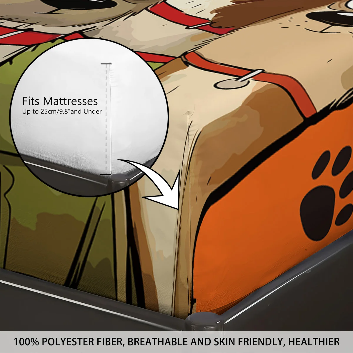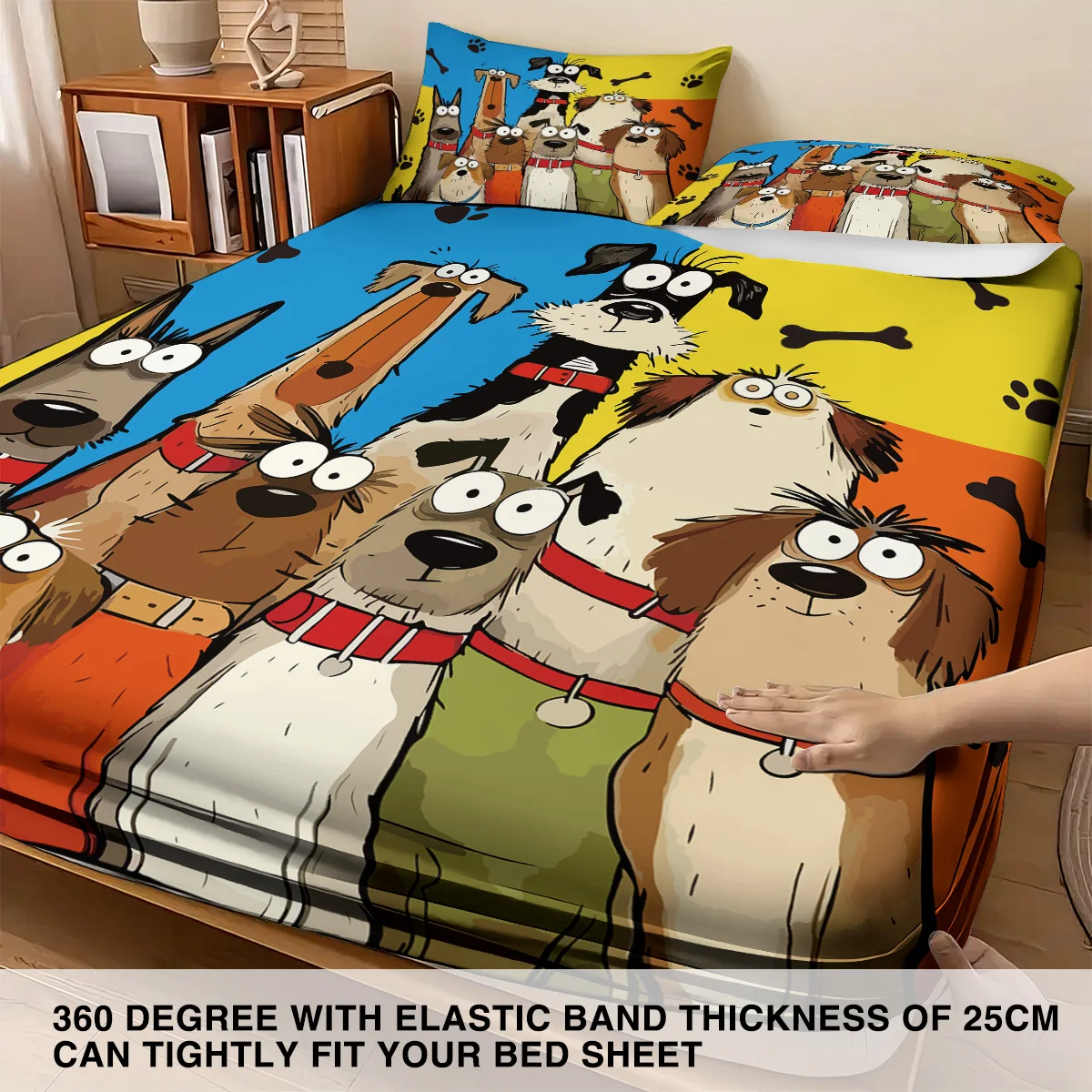 Cute Cartoon Dog Printed Chipless Bed Sheet Set